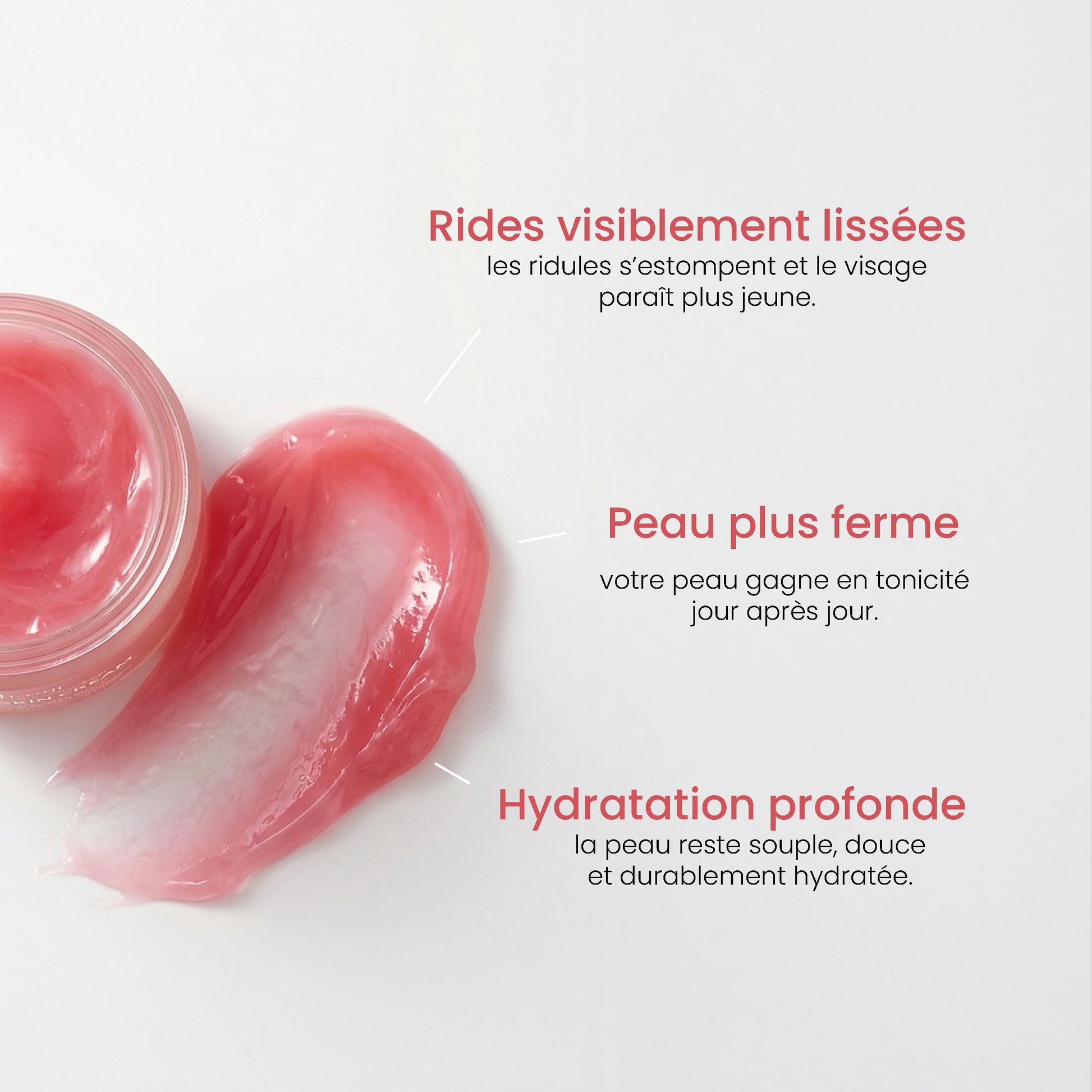 En améliorant l’hydratation et la texture de la peau, la crème aide à réduire l’apparence des ridules au quotidien.