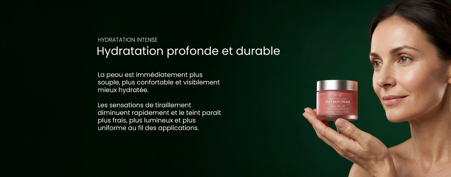 Le collagène agit en synergie avec l’hydratation pour lisser la surface cutanée et améliorer la qualité globale de la peau.