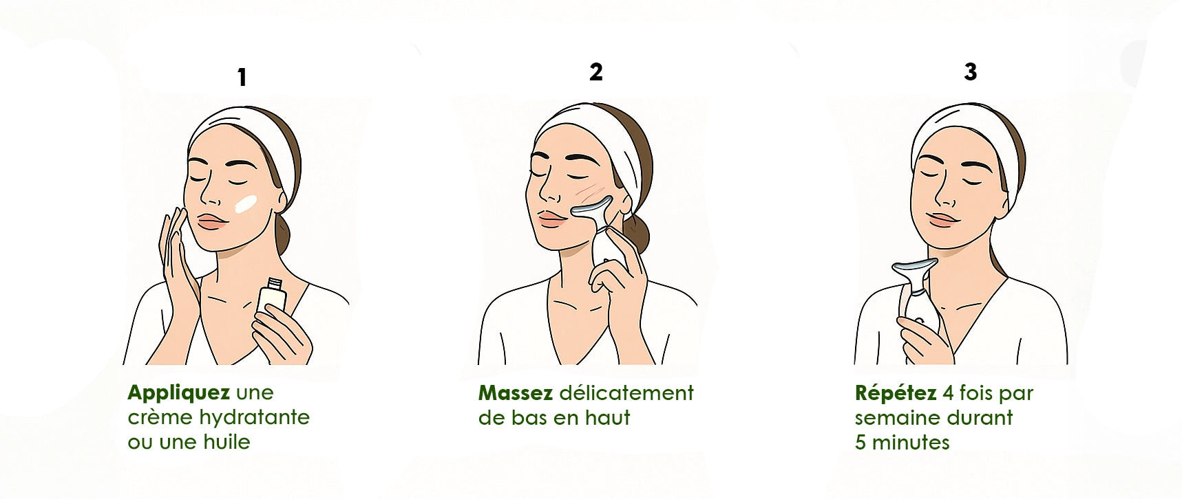 Les vibrations à haute fréquence stimulent la circulation sanguine et réactivent la microcirculation cutanée. Résultat : la peau est mieux oxygénée, plus lumineuse, et les tensions faciales responsables des rides d’expression sont relâchées.