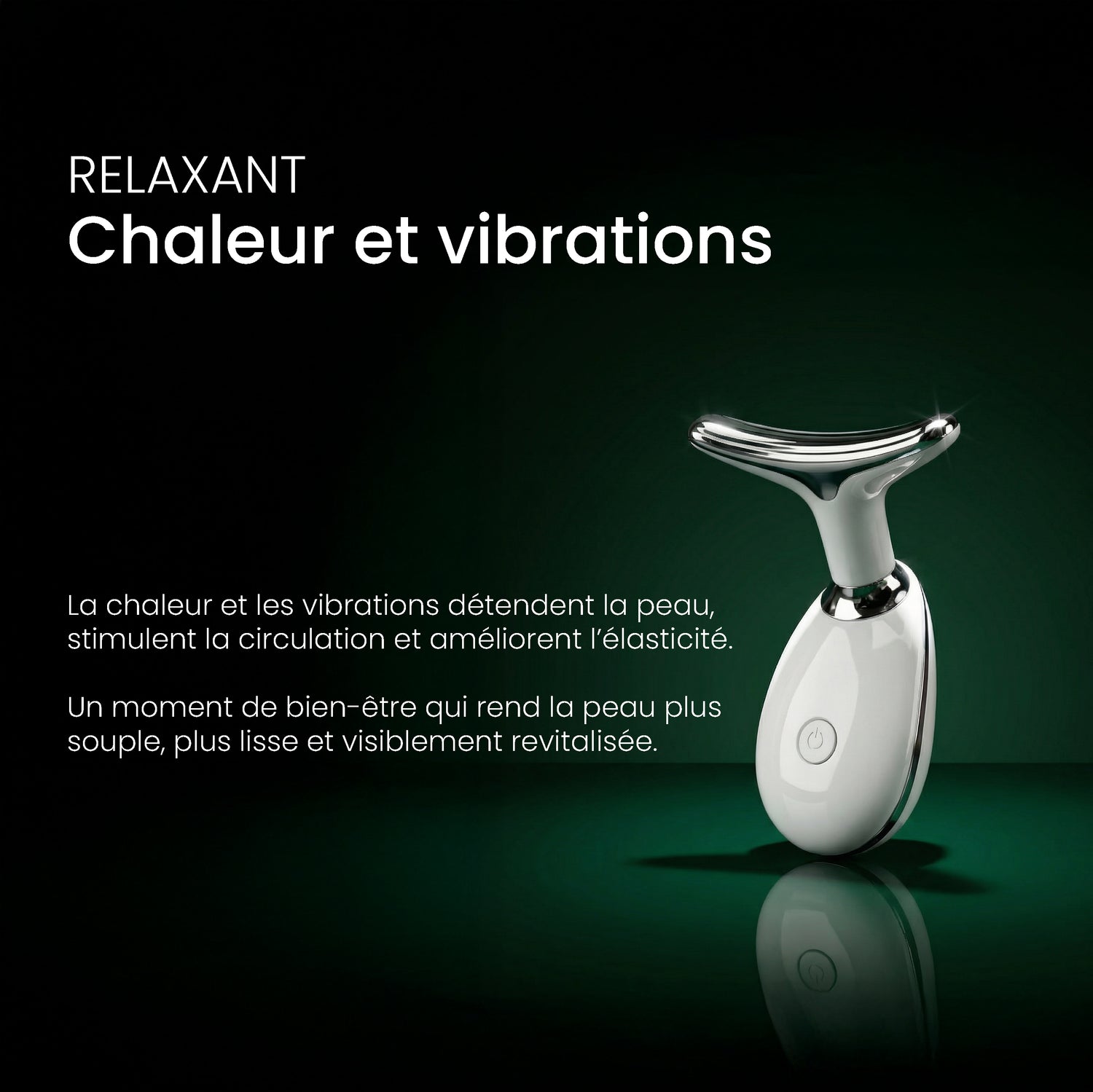 Associées aux vibrations, elle stimule l’activité cellulaire, aide à détendre les fibres musculaires superficielles et contribue à améliorer l’élasticité, la souplesse et la qualité globale de la peau.