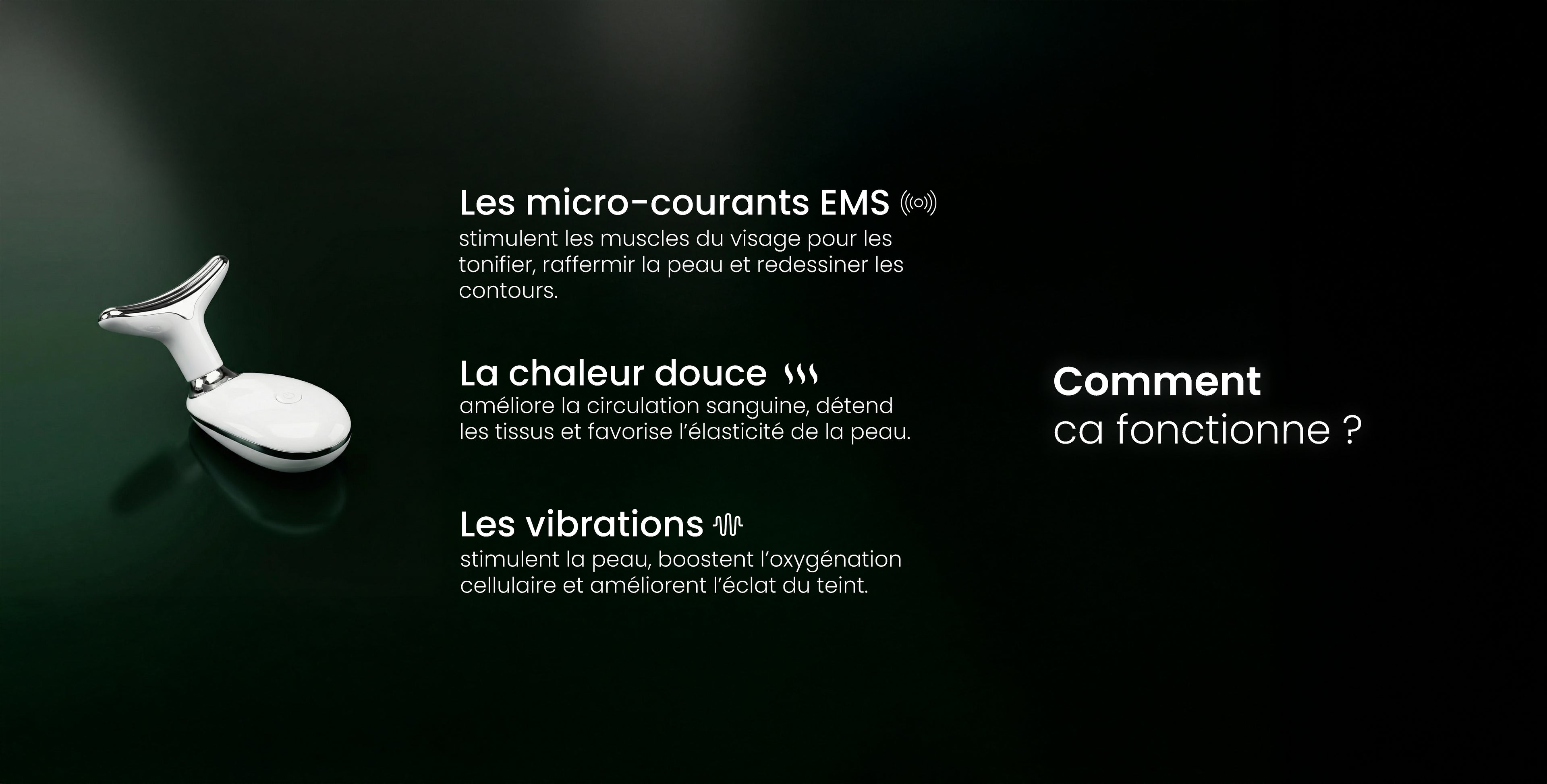 Les micro-courants EMS stimulent en douceur les muscles du visage et activent la circulation sanguine.