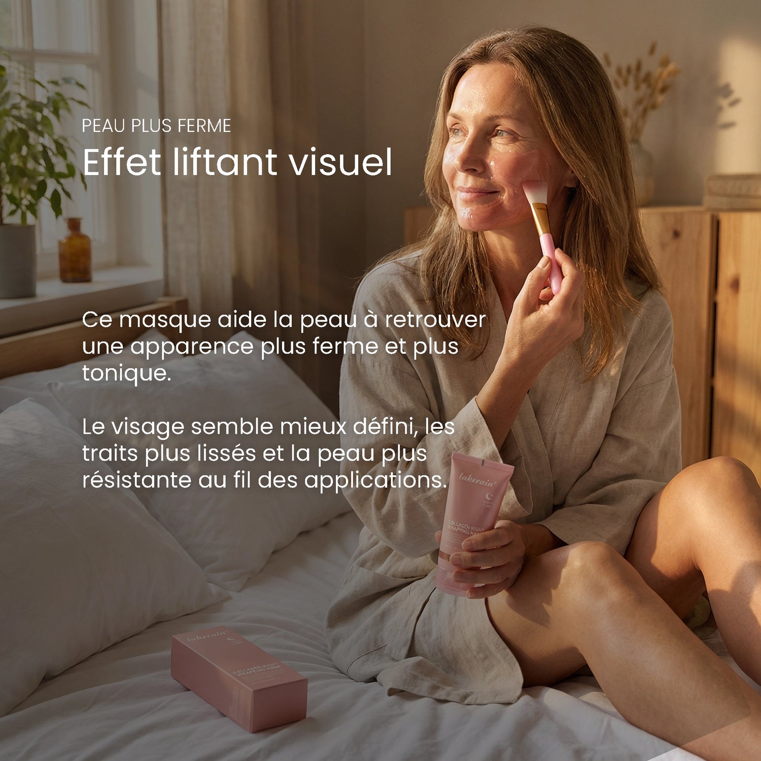Ce masque aide à améliorer l’apparence de la fermeté en apportant un soin qui soutient la structure de la peau. Le visage semble plus tonique et la peau plus résistante au toucher.