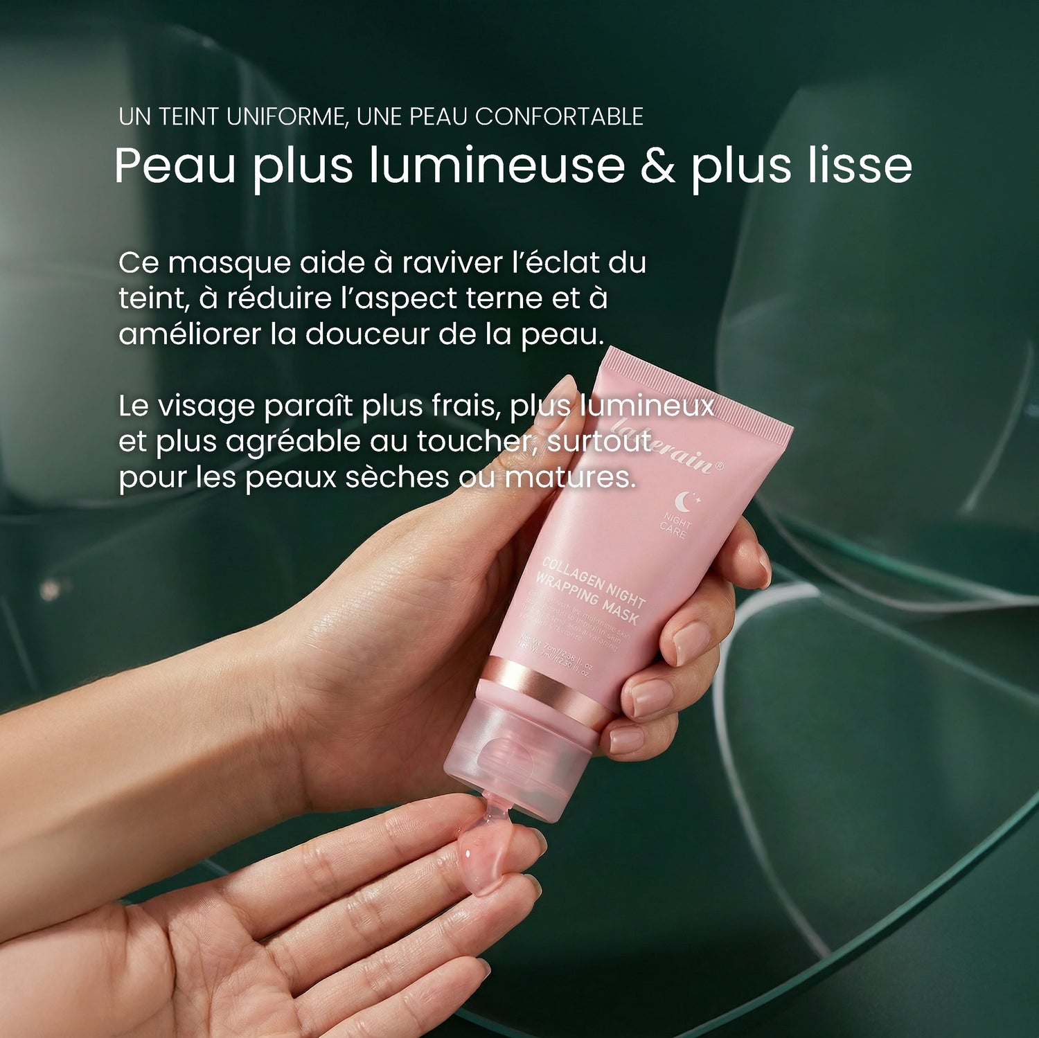Le film hydratant formé par le masque aide également à lisser les micro-irrégularités de surface, ce qui améliore la texture cutanée et le confort sans modifier la pigmentation naturelle de la peau.